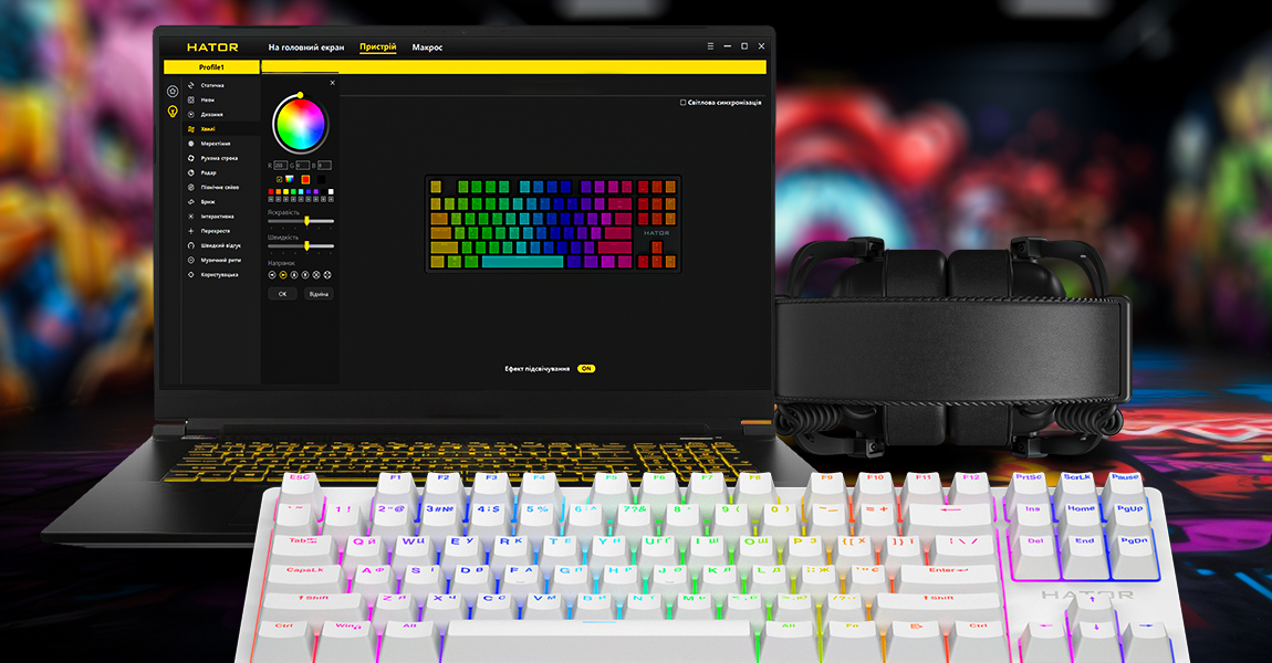 Зносостійкі PBT кейкапи з українськими літерами та яскравим підсвічуванням.
